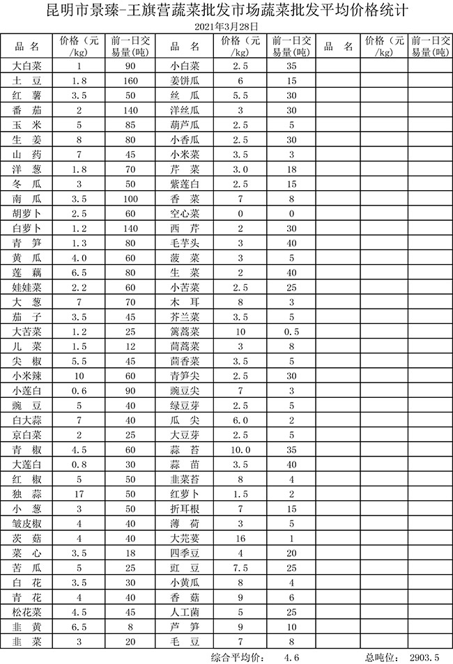 • 市場(chǎng)平均價(jià)格統(tǒng)計(jì)2021年3月28日