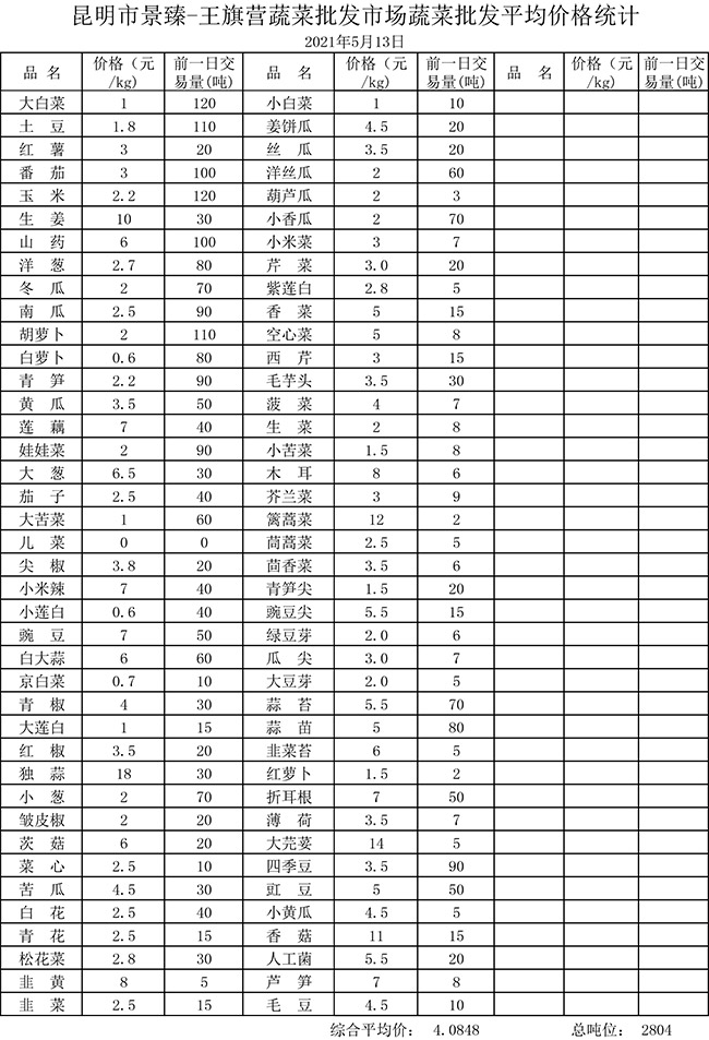 • 市場(chǎng)平均價(jià)格統(tǒng)計(jì)2021年5月13日