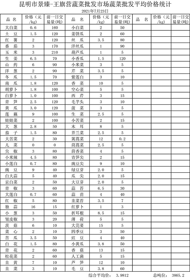 • 市場平均價格統(tǒng)計2021年7月23日