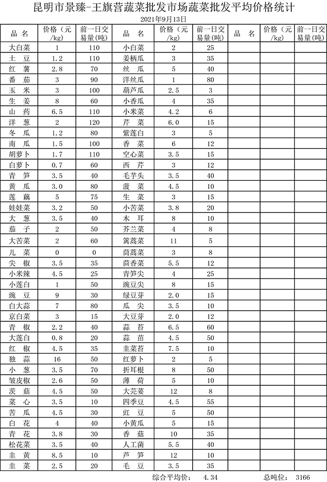 • 市場(chǎng)平均價(jià)格統(tǒng)計(jì)2021年9月13日