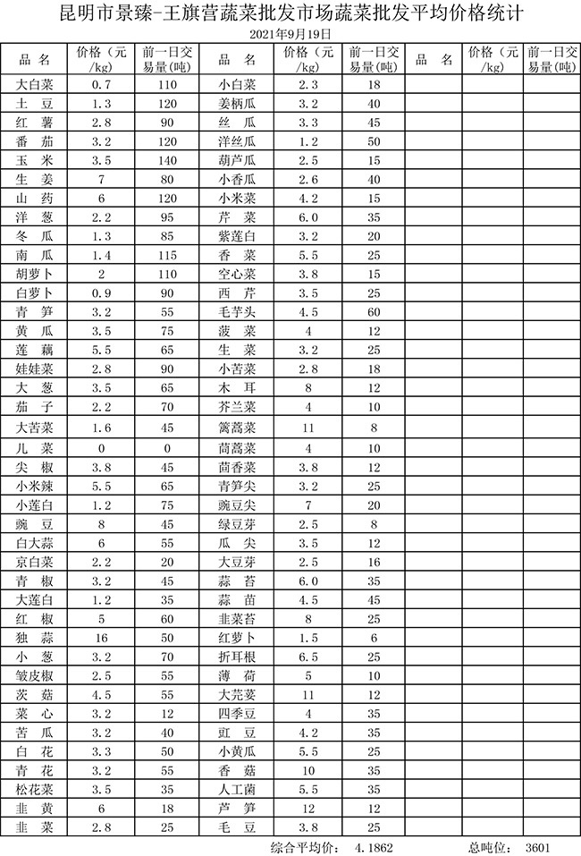 • 市場平均價(jià)格統(tǒng)計(jì)2021年9月19日