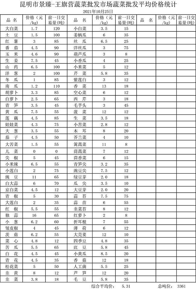 • 市場(chǎng)平均價(jià)格統(tǒng)計(jì)2021年10月25日