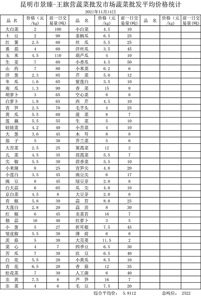 • 市場(chǎng)平均價(jià)格統(tǒng)計(jì)2021年11月14日