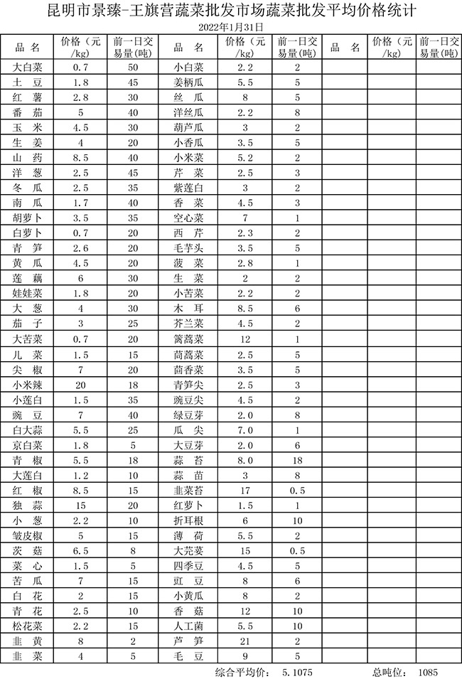 • 市場平均價格統(tǒng)計2022年1月31日