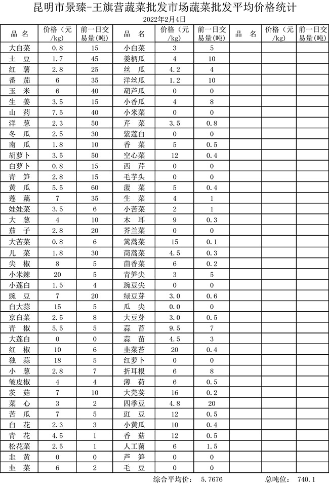 • 市場(chǎng)平均價(jià)格統(tǒng)計(jì)2022年2月4日