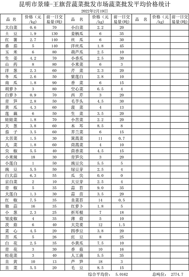 • 市場(chǎng)平均價(jià)格統(tǒng)計(jì)2022年2月19日