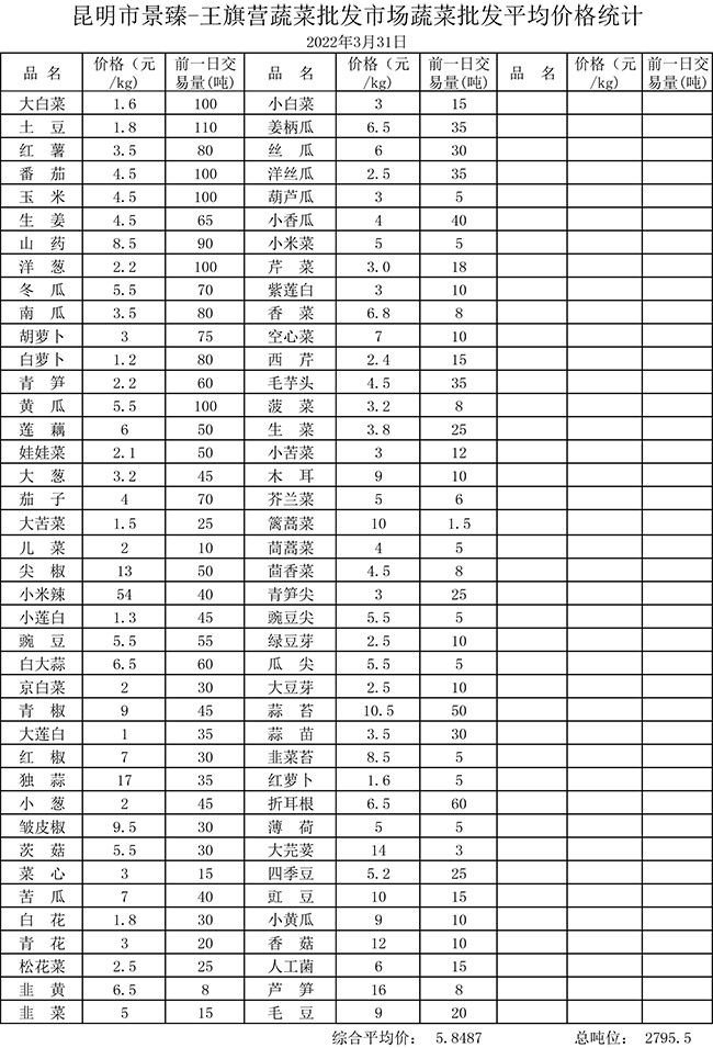 • 市場(chǎng)平均價(jià)格統(tǒng)計(jì)2022年3月31日