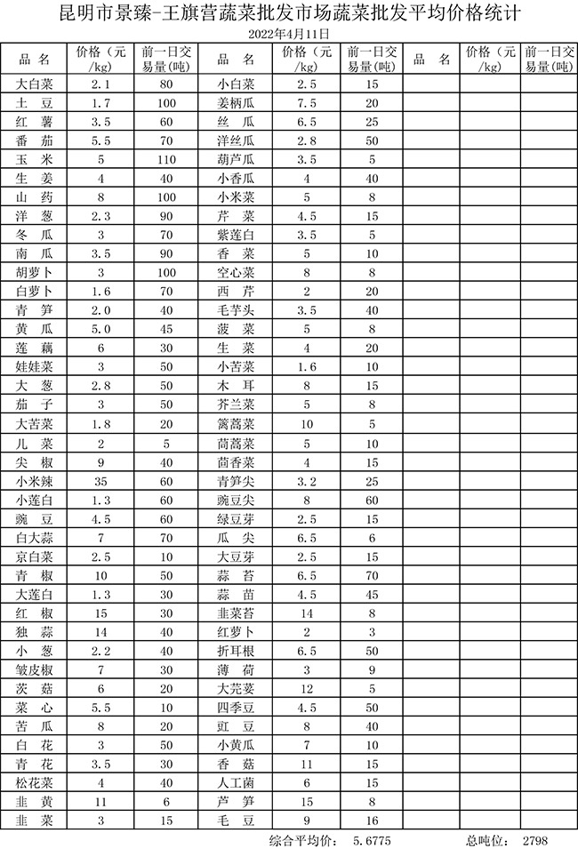 • 市場(chǎng)平均價(jià)格統(tǒng)計(jì)2022年4月11日