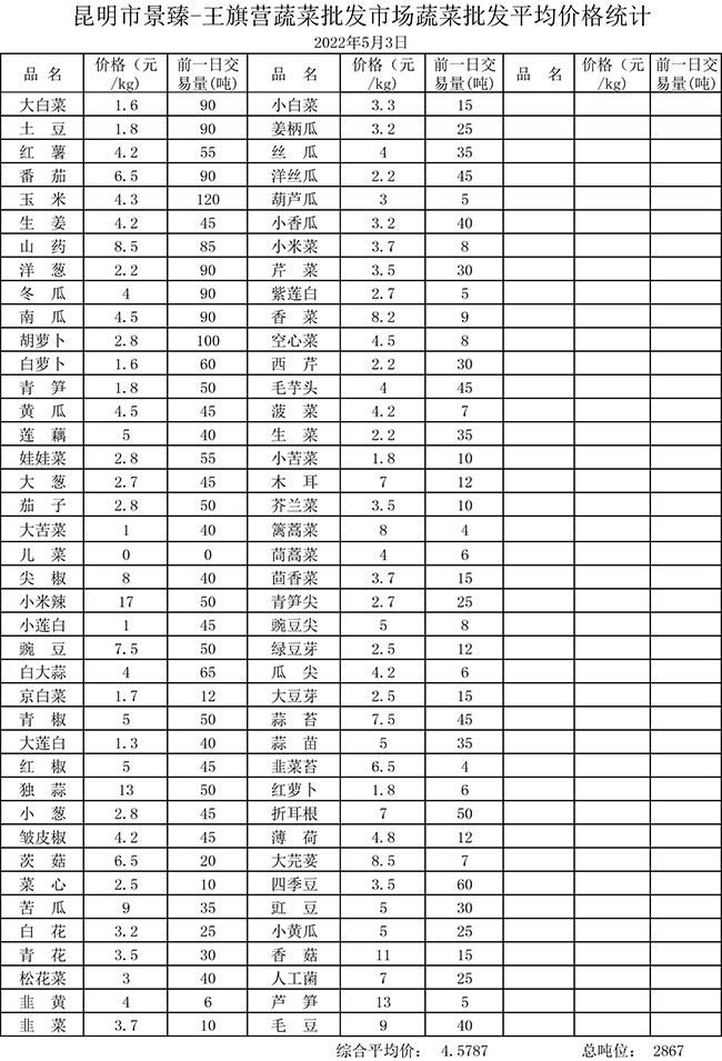 • 市場平均價格統(tǒng)計2022年5月3日