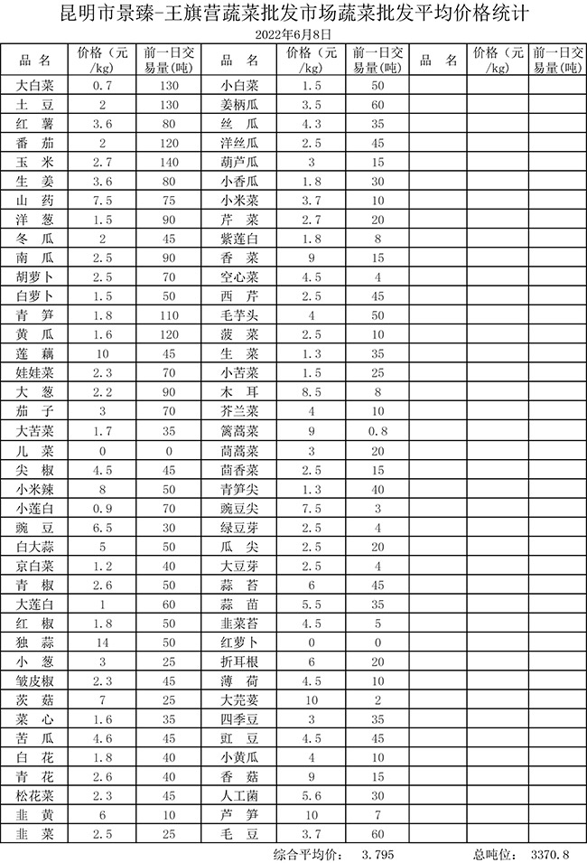 • 市場(chǎng)平均價(jià)格統(tǒng)計(jì)2022年6月8日