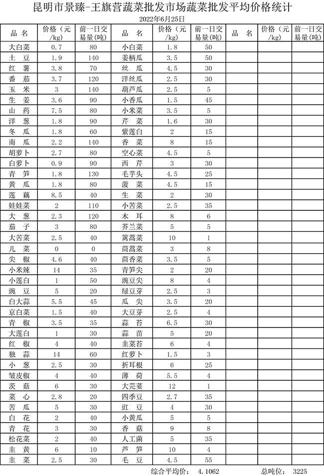 • 市場(chǎng)平均價(jià)格統(tǒng)計(jì)2022年6月25日