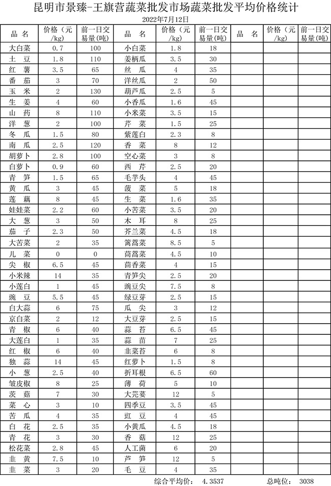 • 市場平均價(jià)格統(tǒng)計(jì)2022年7月12日