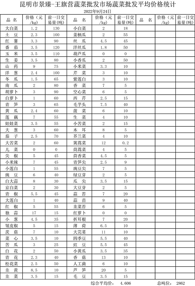 • 市場(chǎng)平均價(jià)格統(tǒng)計(jì)2022年9月24日