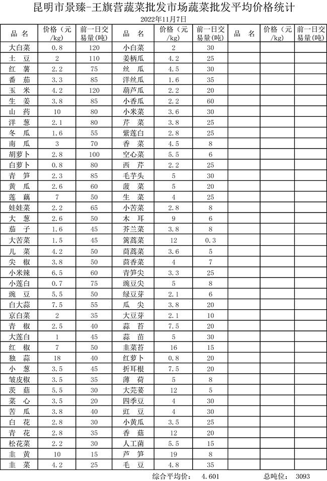 • 市場平均價(jià)格統(tǒng)計(jì)2022年11月7日
