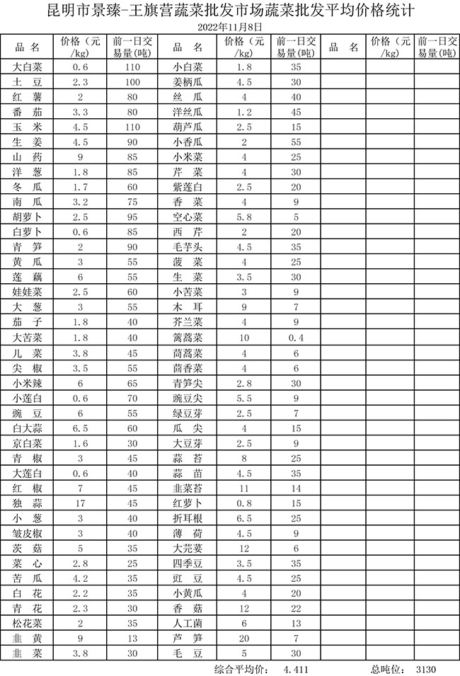 • 市場平均價(jià)格統(tǒng)計(jì)2022年11月8日