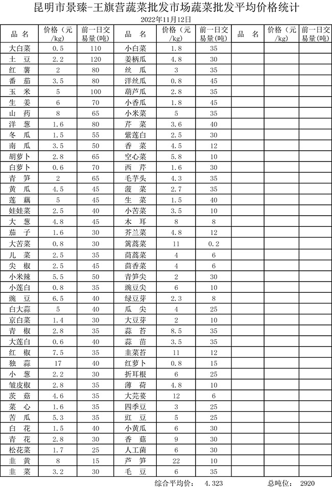 • 市場(chǎng)平均價(jià)格統(tǒng)計(jì)2022年11月12日