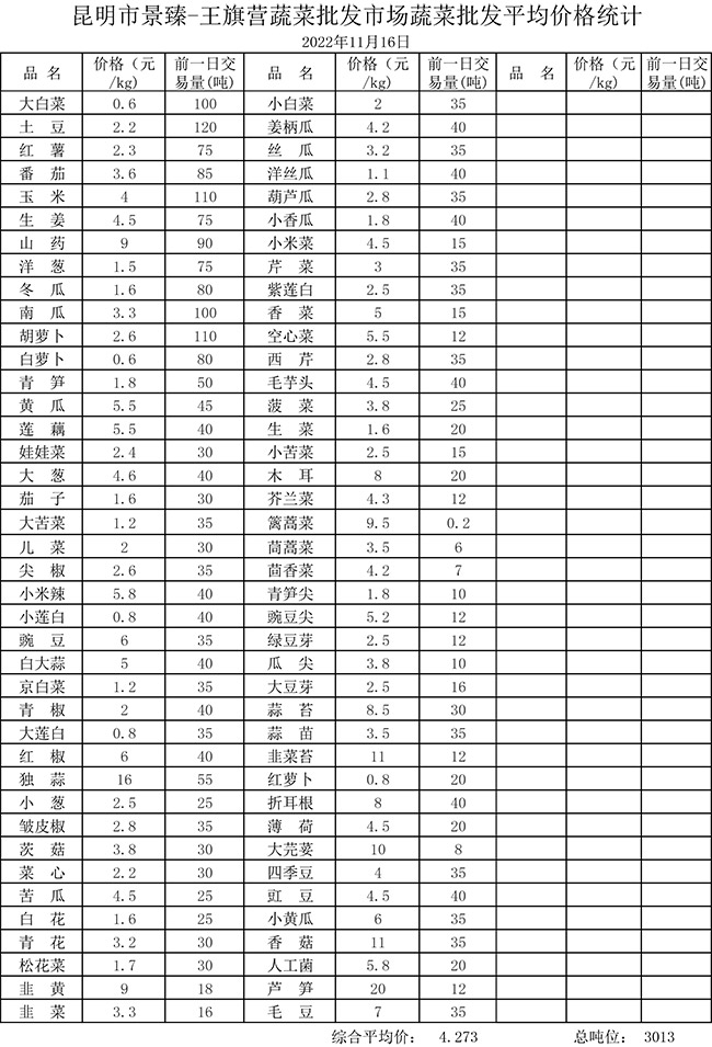 • 市場(chǎng)平均價(jià)格統(tǒng)計(jì)2022年11月16日
