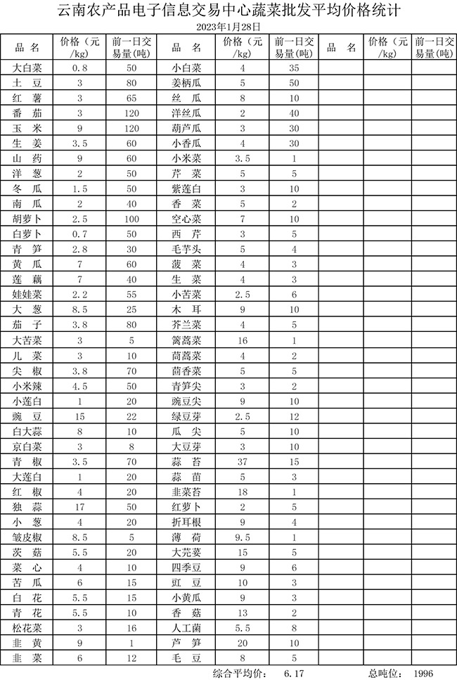 • 市場(chǎng)平均價(jià)格統(tǒng)計(jì)2023年1月28日