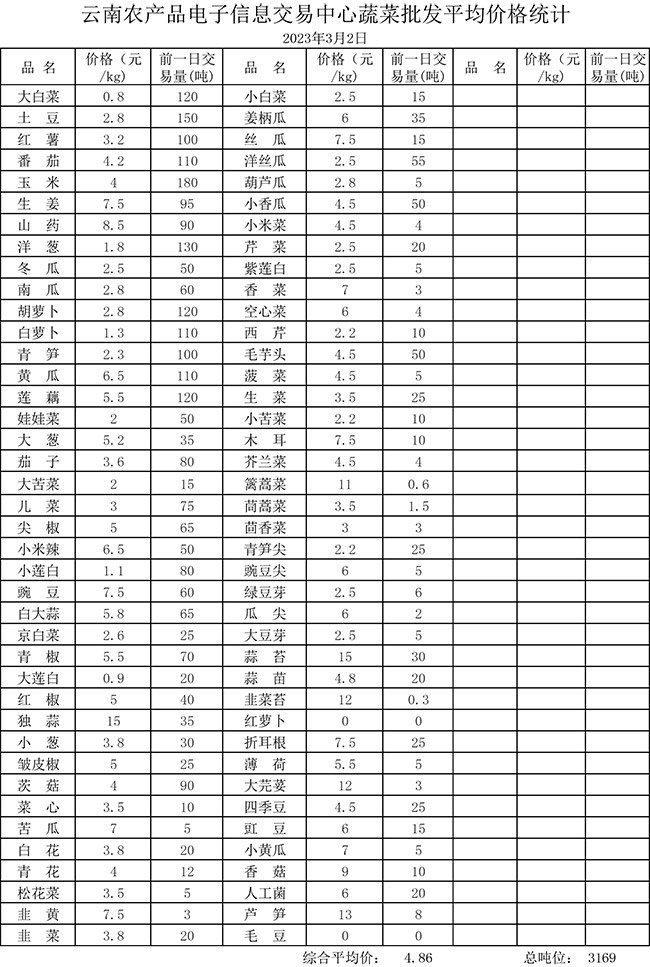 • 市場(chǎng)平均價(jià)格統(tǒng)計(jì)2023年3月2日