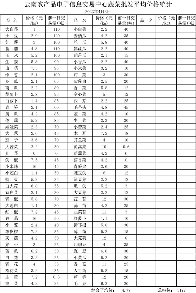 • 市場平均價格統(tǒng)計2023年4月3日