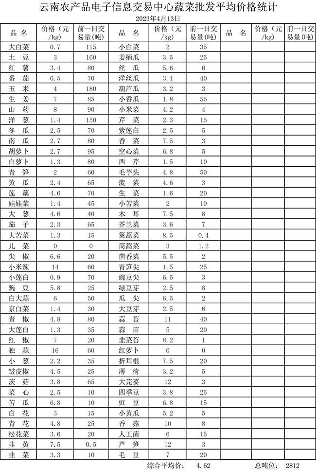 • 市場(chǎng)平均價(jià)格統(tǒng)計(jì)2023年4月13日