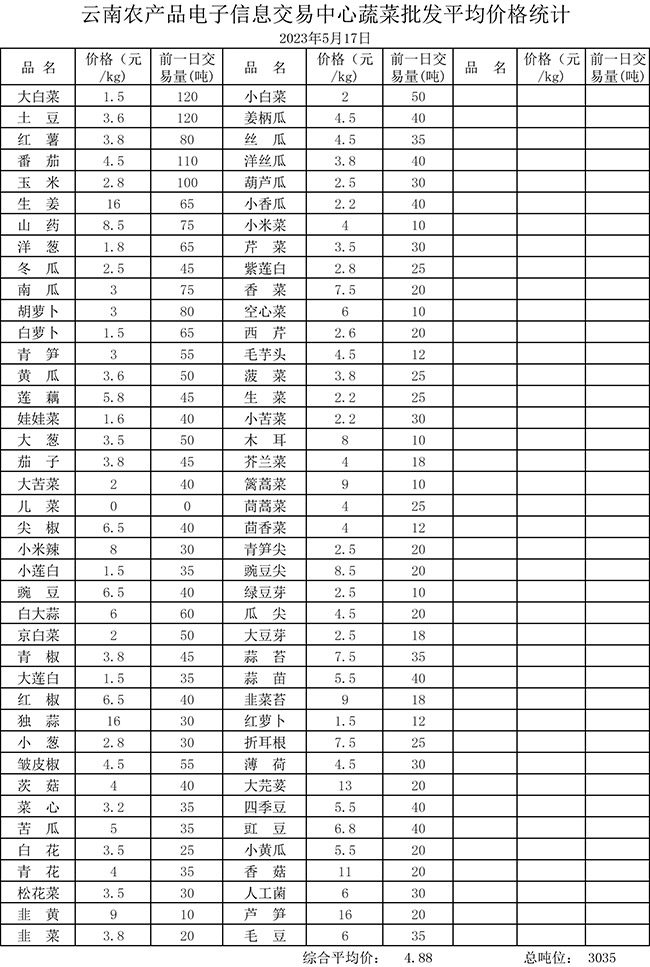 • 市場平均價(jià)格統(tǒng)計(jì)2023年5月17日