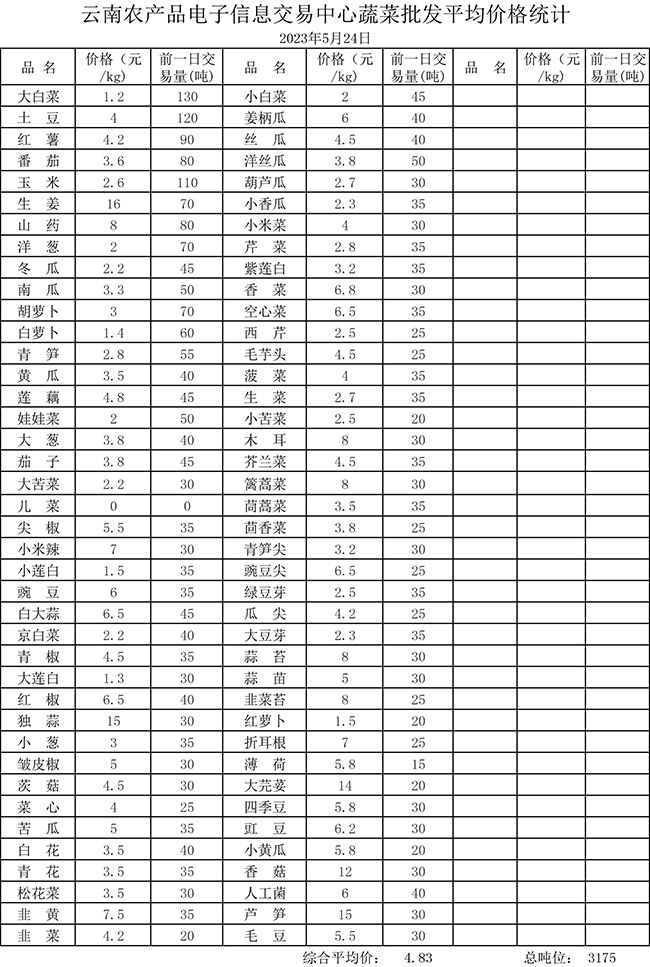 • 市場(chǎng)平均價(jià)格統(tǒng)計(jì)2023年5月24日