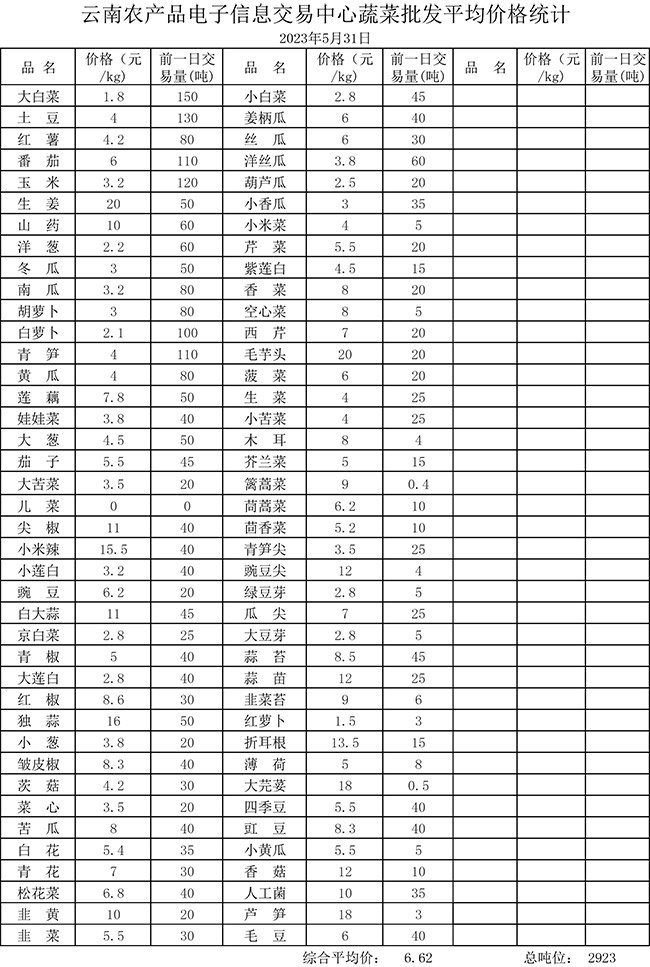• 市場平均價(jià)格統(tǒng)計(jì)2023年5月31日