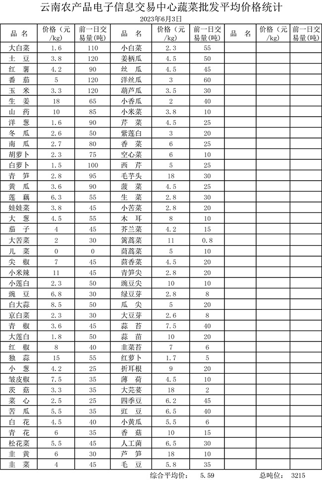 • 市場(chǎng)平均價(jià)格統(tǒng)計(jì)2023年6月3日