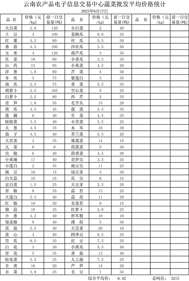 • 市場平均價(jià)格統(tǒng)計(jì)2023年6月17日