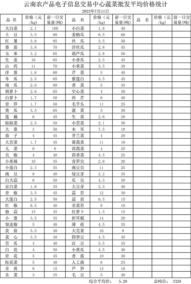 • 市場(chǎng)平均價(jià)格統(tǒng)計(jì)2023年7月11日