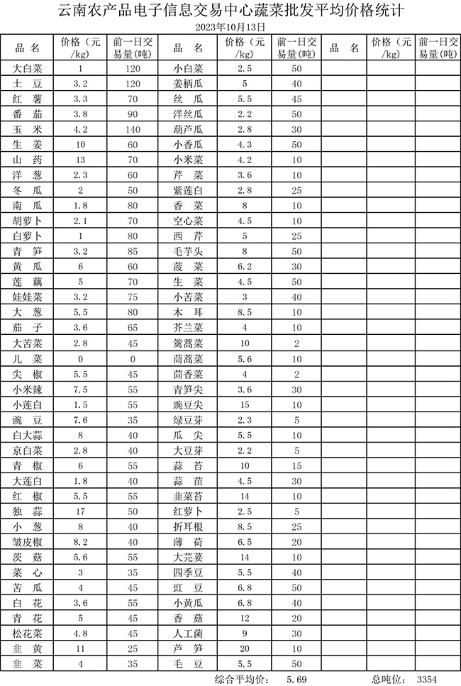• 市場(chǎng)平均價(jià)格統(tǒng)計(jì)2023年10月13日