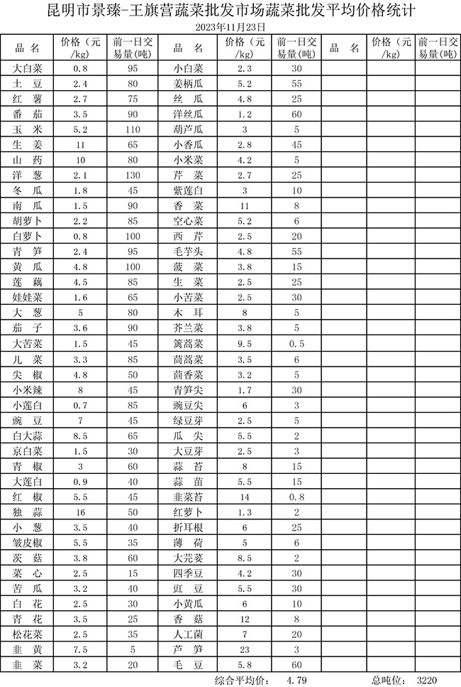 • 市場(chǎng)平均價(jià)格統(tǒng)計(jì)2023年11月23日