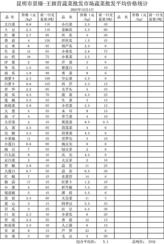• 市場(chǎng)平均價(jià)格統(tǒng)計(jì)2023年12月1日