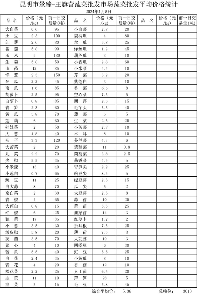 • 市場(chǎng)平均價(jià)格統(tǒng)計(jì)2024年1月5日