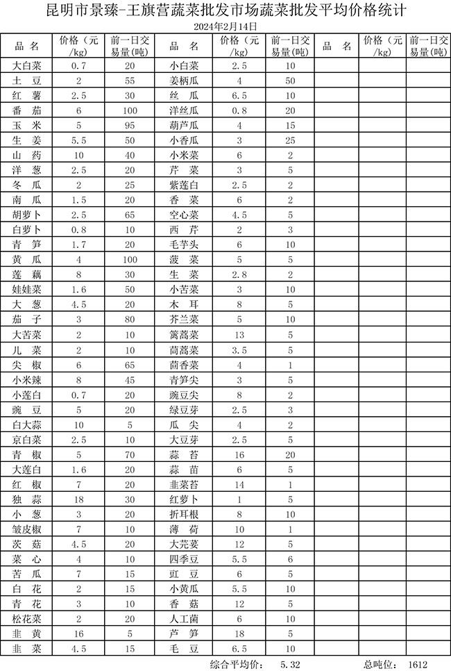 • 市場平均價格統(tǒng)計2024年2月14日