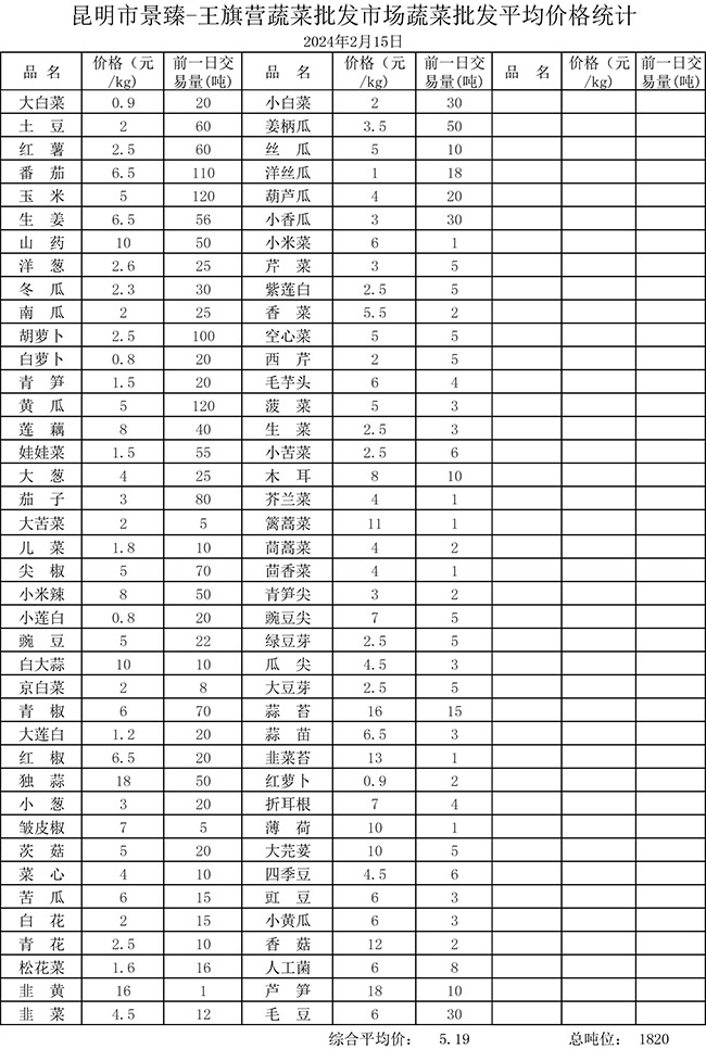 • 市場(chǎng)平均價(jià)格統(tǒng)計(jì)2024年2月15日