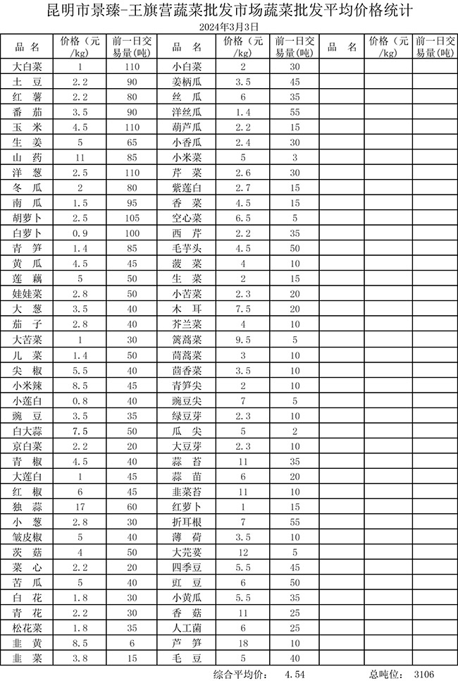 • 市場平均價(jià)格統(tǒng)計(jì)2024年3月3日