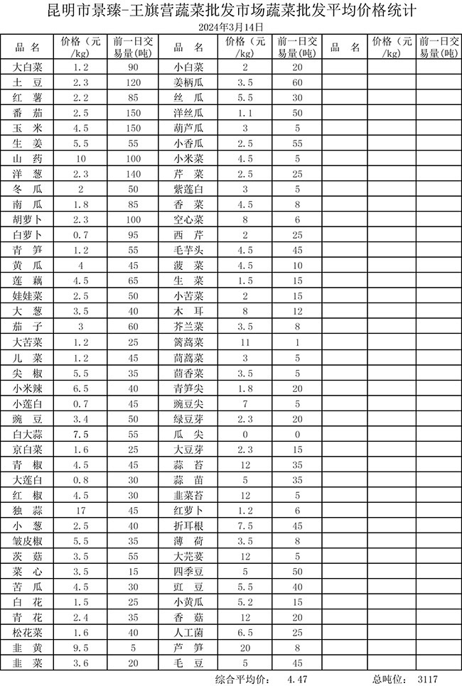 • 市場(chǎng)平均價(jià)格統(tǒng)計(jì)2024年3月14日