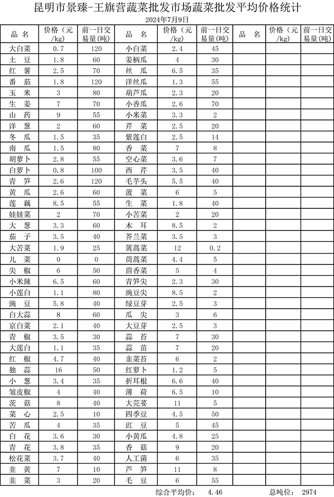 • 市場(chǎng)平均價(jià)格統(tǒng)計(jì)2024年7月9日