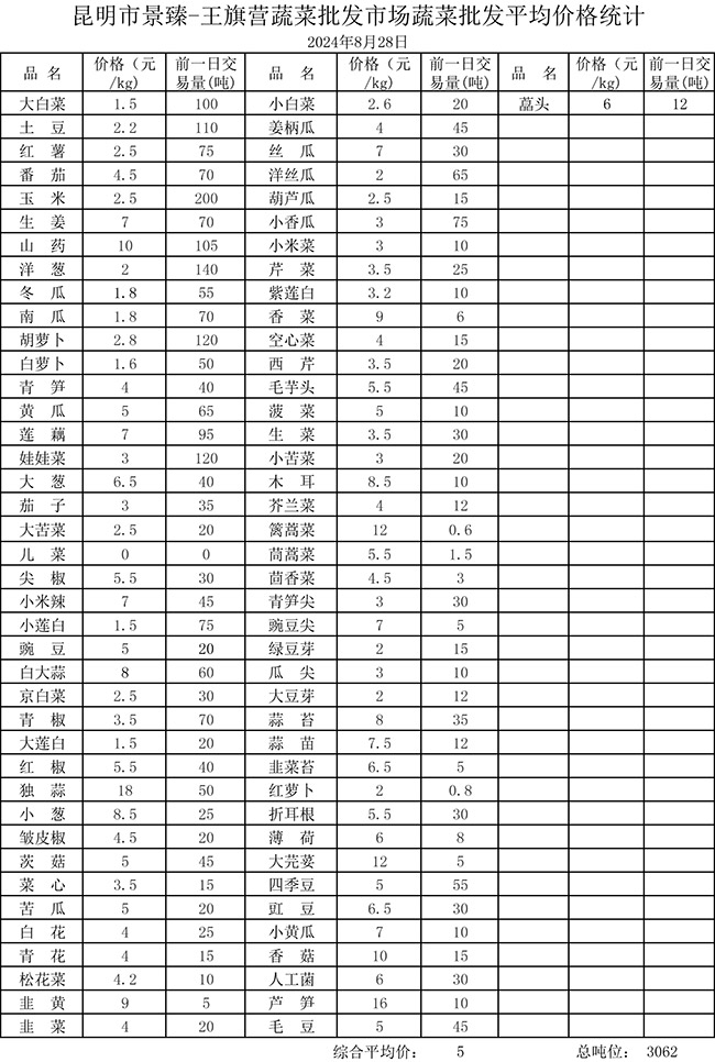 • 市場平均價(jià)格統(tǒng)計(jì)2024年8月28日