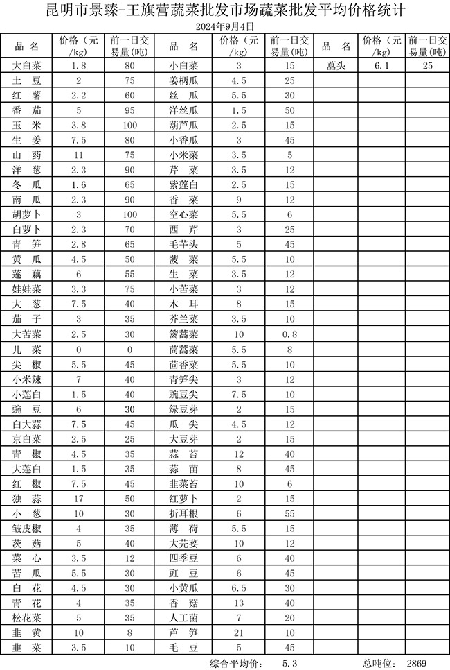 • 市場平均價(jià)格統(tǒng)計(jì)2024年9月4日