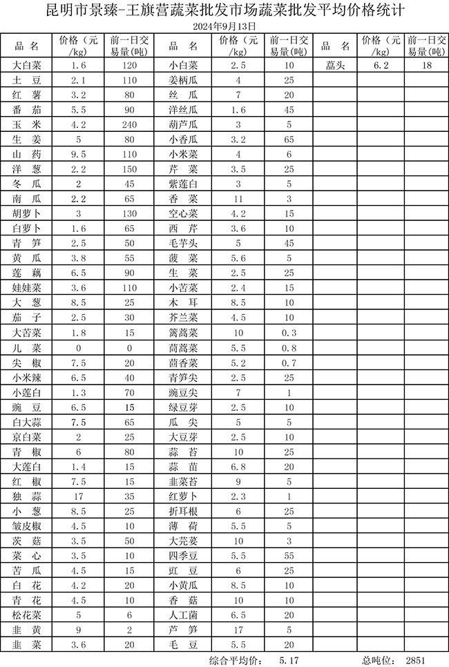 • 市場平均價(jià)格統(tǒng)計(jì)2024年9月13日