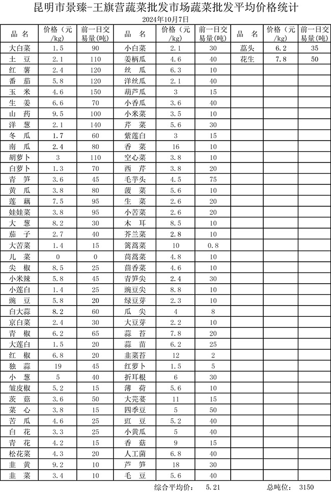 • 市場平均價(jià)格統(tǒng)計(jì)2024年10月7日