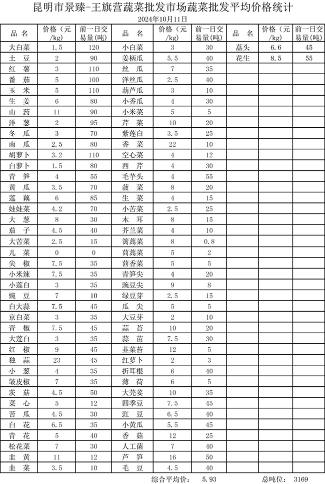 • 市場平均價(jià)格統(tǒng)計(jì)2024年10月11日
