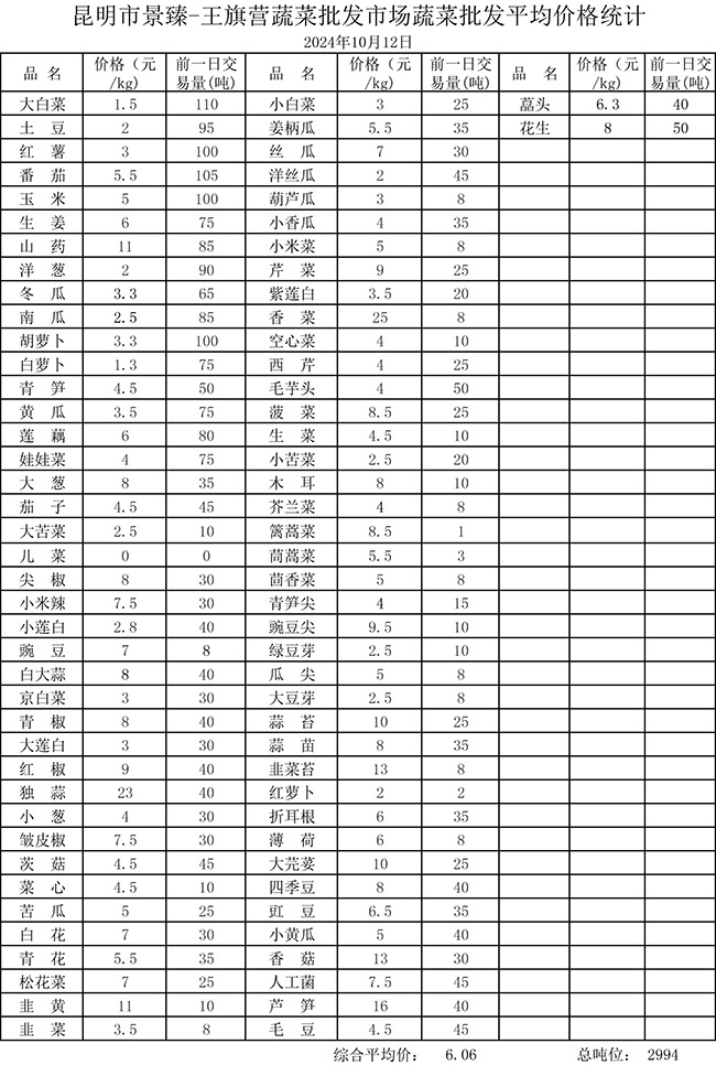 • 市場平均價(jià)格統(tǒng)計(jì)2024年10月12日