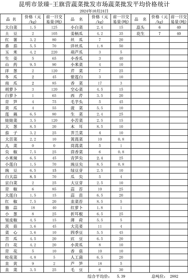 • 市場(chǎng)平均價(jià)格統(tǒng)計(jì)2024年10月24日