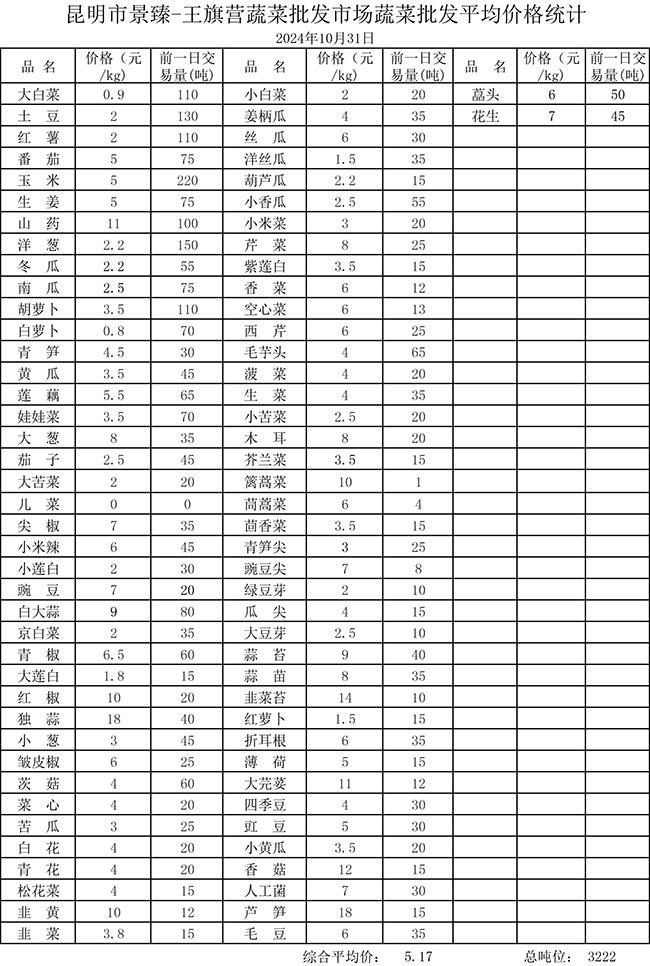 • 市場(chǎng)平均價(jià)格統(tǒng)計(jì)2024年10月31日