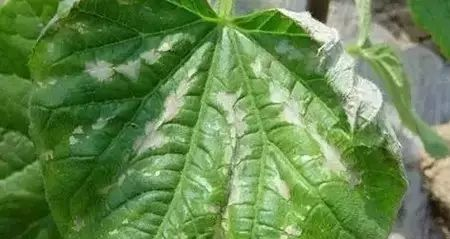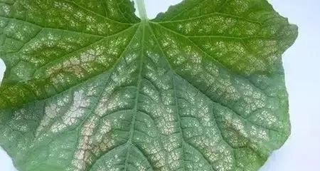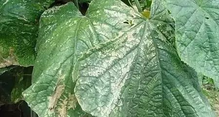 當(dāng)棚室中二氧化硫的濃度達(dá)到0.5~10mg/L時(shí),就會(huì)對(duì)黃瓜造成危害,二氧化硫氣體首先由氣孔進(jìn)入葉片,然后溶解浸潤(rùn)到細(xì)胞壁的水分中,使葉肉組織失去膨壓而萎蔫,產(chǎn)生水浸狀斑,最后變成白色,在葉片上出現(xiàn)界限分明的點(diǎn)狀或塊狀壞死斑。