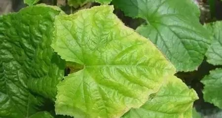 白化葉致病原因是植株缺鎂。黃瓜植株進(jìn)入盛瓜期后,對(duì)鎂的需求量增加,此時(shí)鎂供應(yīng)不足易產(chǎn)生缺鎂癥。